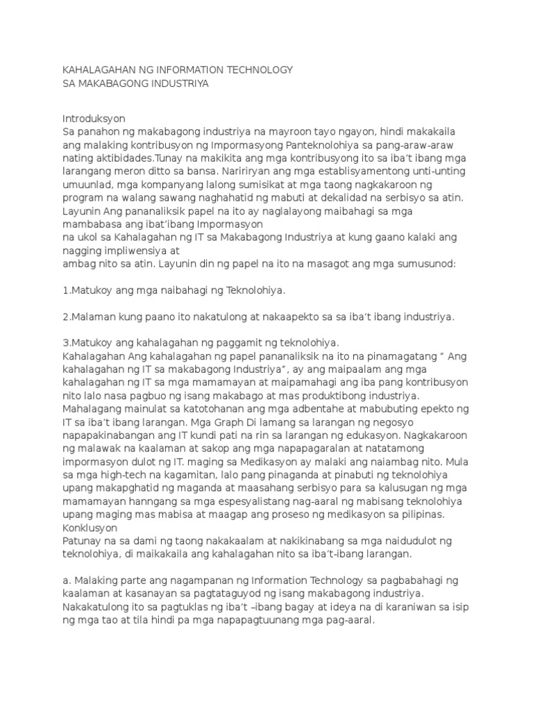 Ang isang mahalagang alituntunin ay maaaring Ang layunin natin sa klase ay pag-aralan ang ebanghelyo sa pamamagitan ng Espiritu Santo. PAHAYAG NG TESIS Maraming pagbabago ang naihatid ng teknolohiya sa henerasyon ngayon. Benepisyo ng makabagong teknolohiya sa mga estudyante.